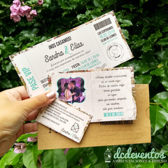 INVITACIÓN CASAMIENTO PASAJE DE AVIÓN